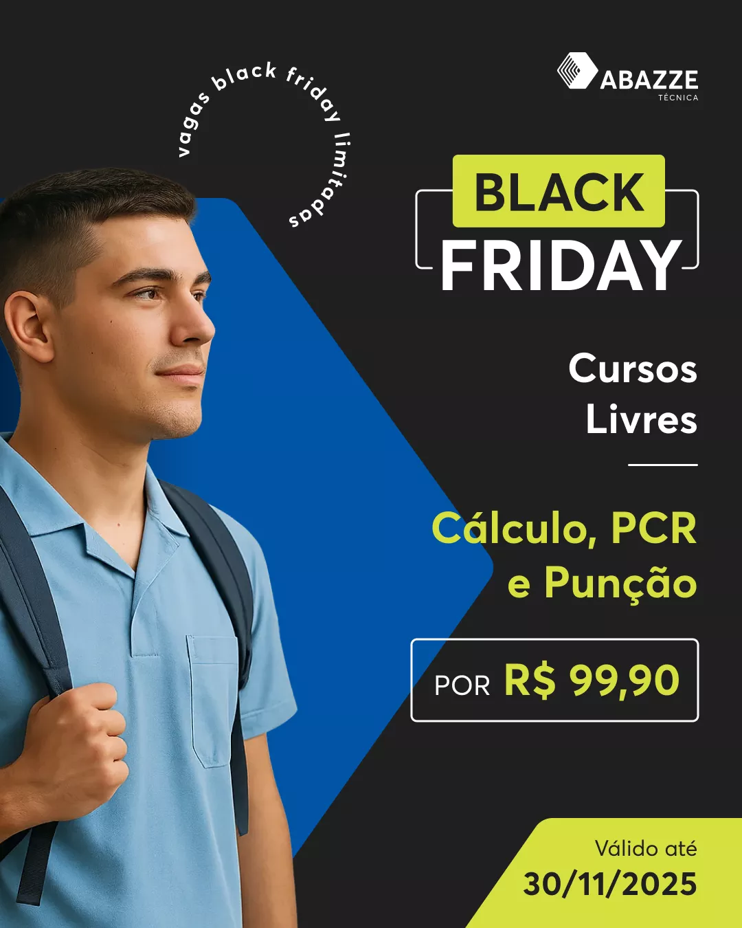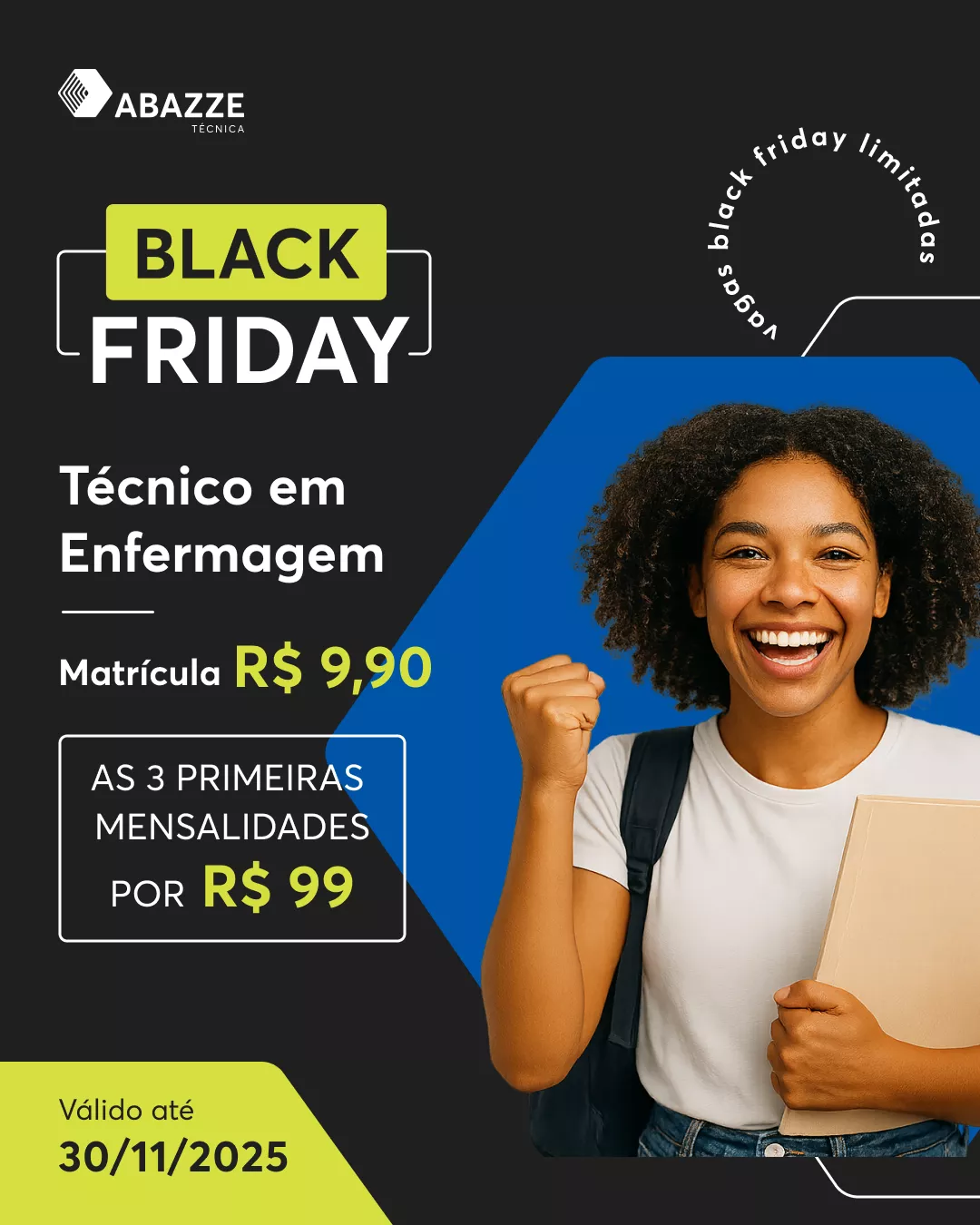 As condições da Black Friday da Abazze Técnica são por tempo limitado e as vagas são disputadas. Sua nova vida profissional te espera!