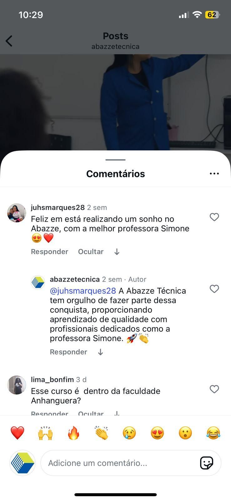 "Feliz em estar realizando um sonho na Abazze com a melhor professora: Simone."